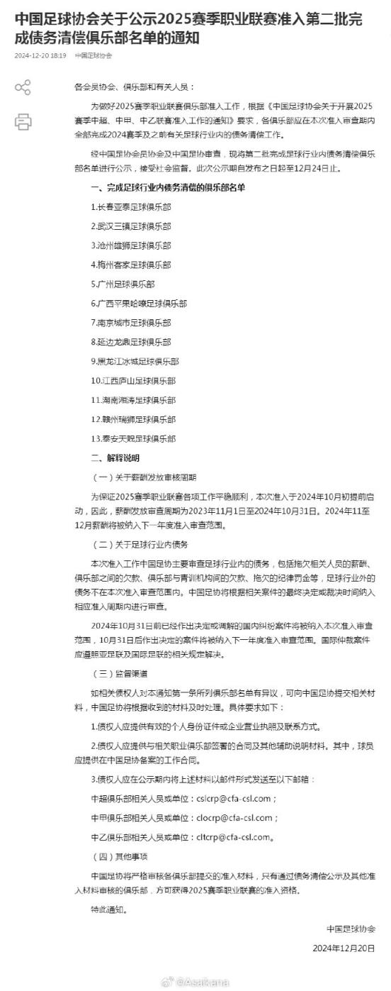 第二批完成债务清偿俱乐部名单,不在第一批名单的全员上榜